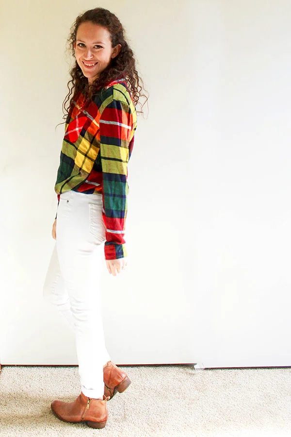 Top: American Eagle Boyfriend Plaid Shirt (last season, this season's here) // Jeans: Levi's Skinny Jeans // Boots: Lucky Brand Basel Flat Booties